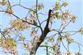 写真4:桜の花が散っている筈の枝に、このような来客も・・・ |