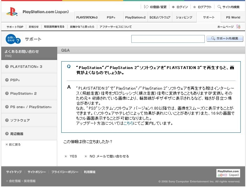 『Plastation.com Q&Aより引用』 プレイステーション3(PS3) ソフトすべて ☆カローラの親父★さんのクチコミ掲示板画像1/1