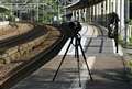 撮影機材をセッティングして、場所取りしてらっしゃる方が…