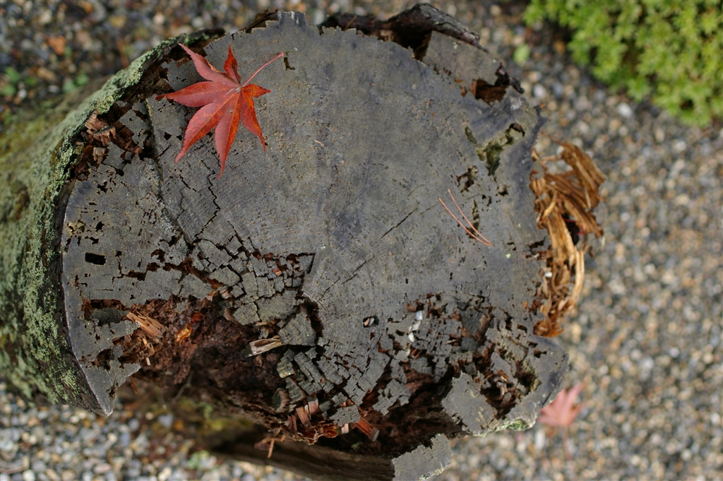 FA35 切り株の上の紅葉の葉っぱ