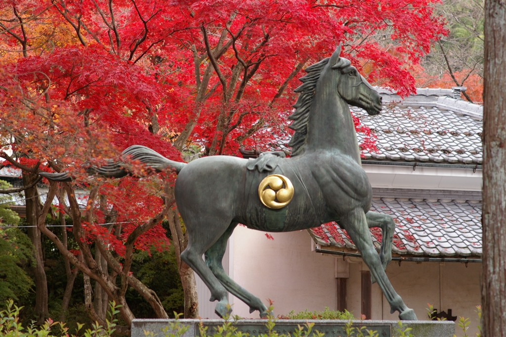 DA70 馬の像とロッソな紅葉