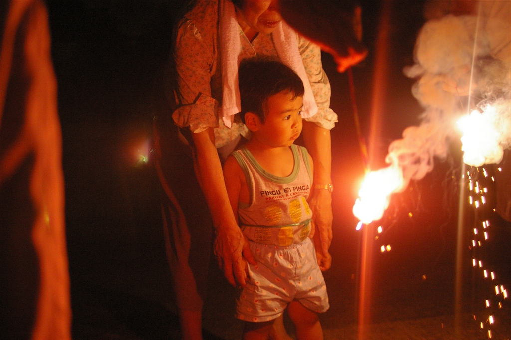 花火にビックリ