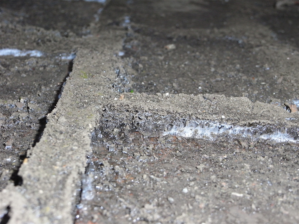 レンガ敷きの目地部分だけがもっこり・・・・