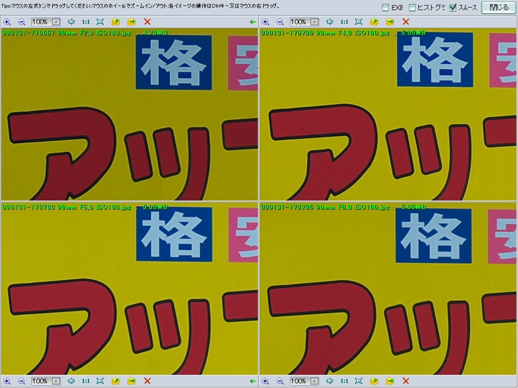F2.8〜F8.0の描写