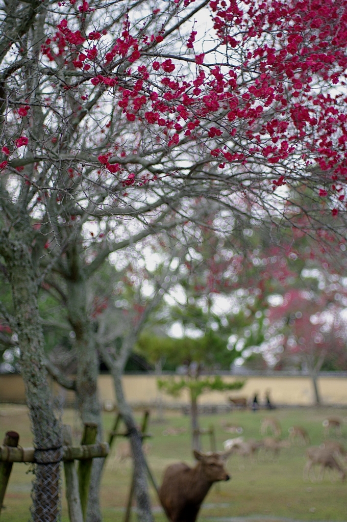 絞り開放の紅梅&鹿