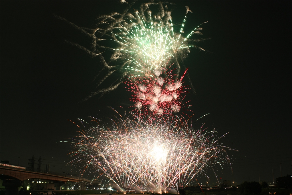 点滅する花火(隙間のある黒い回転円板の隙間から撮影:次の写真参照)
