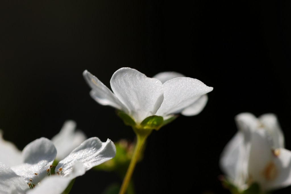 ユキヤナギの小さな花を逆光で
