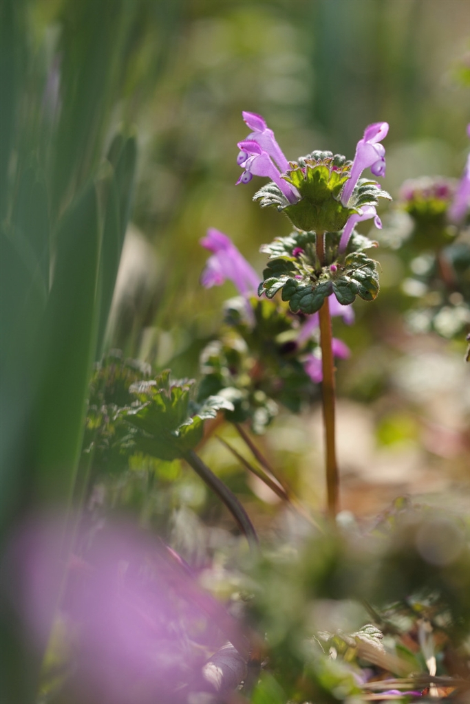 スイセン畑のホトケノザ