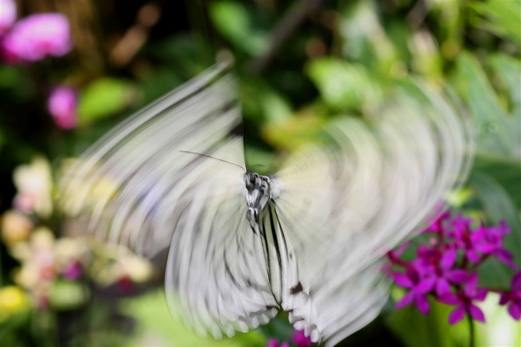 飛んでいるチョウの羽ばたきをスローシャッターで撮る