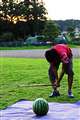 手持ち撮影、しゃがんで ひざをつき、カメラはがっちりホールドです。
