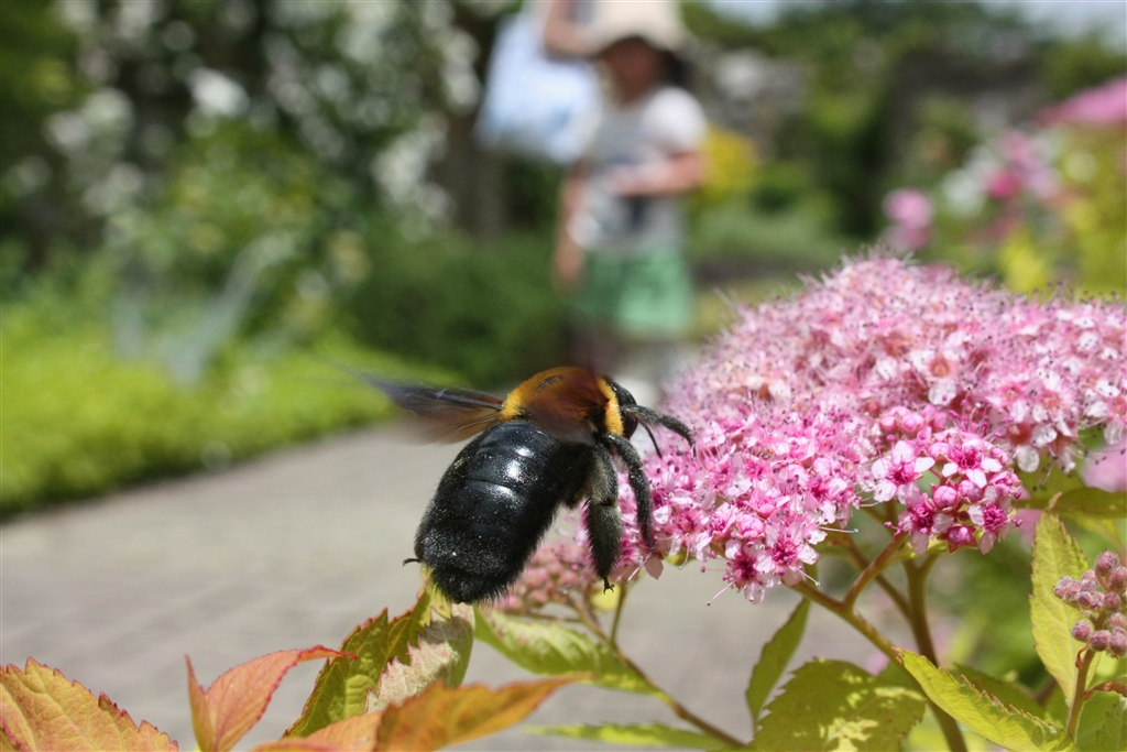 コマルハナバチを遠くで見守る親子