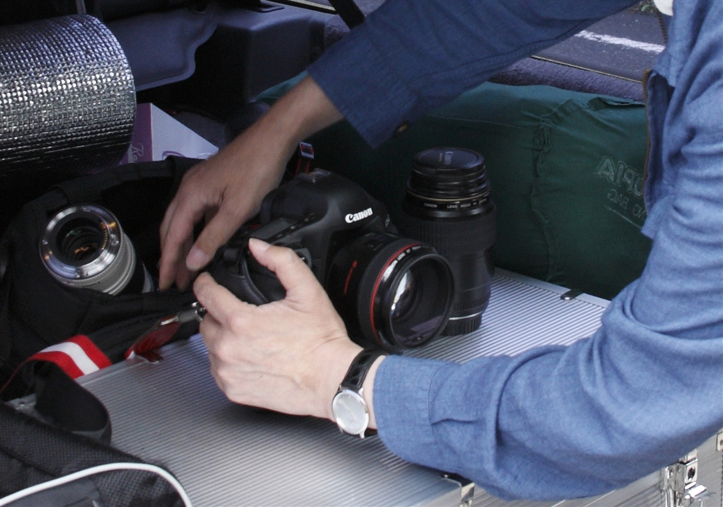 1D3に50Lを装着して記念撮影をしようとするA氏