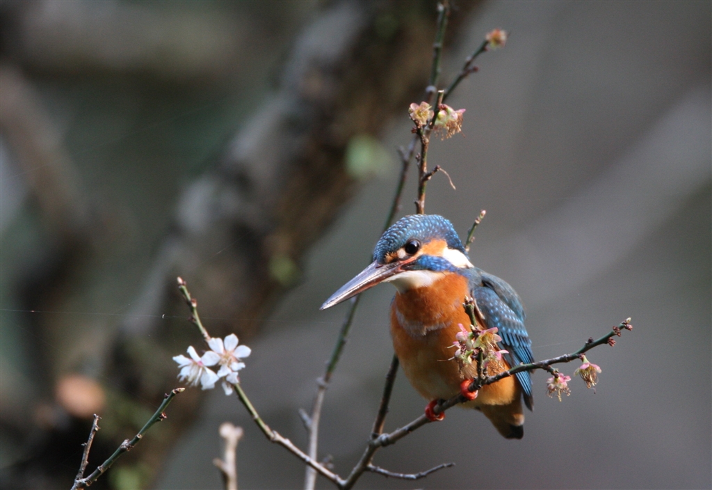 梅二輪とカワセミ♀