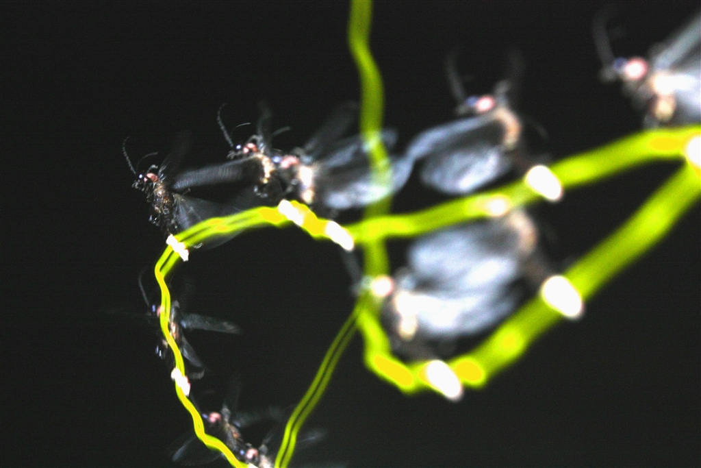 尾灯を点けながら飛行するホタル