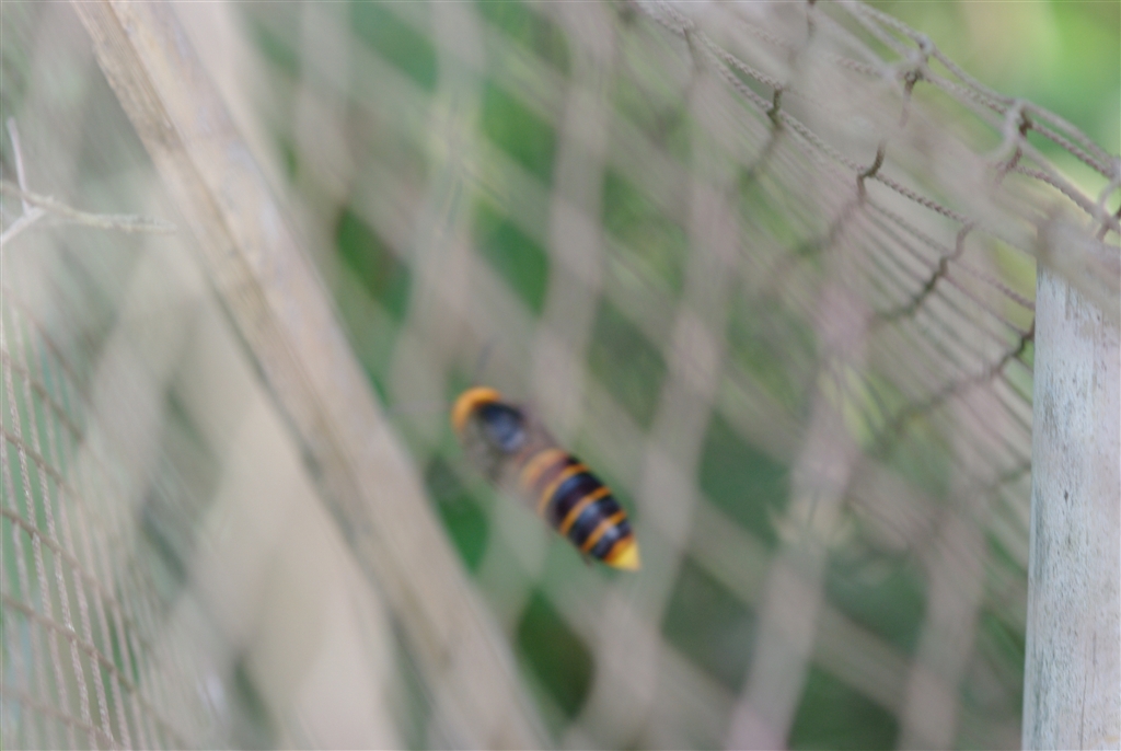 網の中のスズメバチ、落ちついて撮れる筈なのにピンボケ