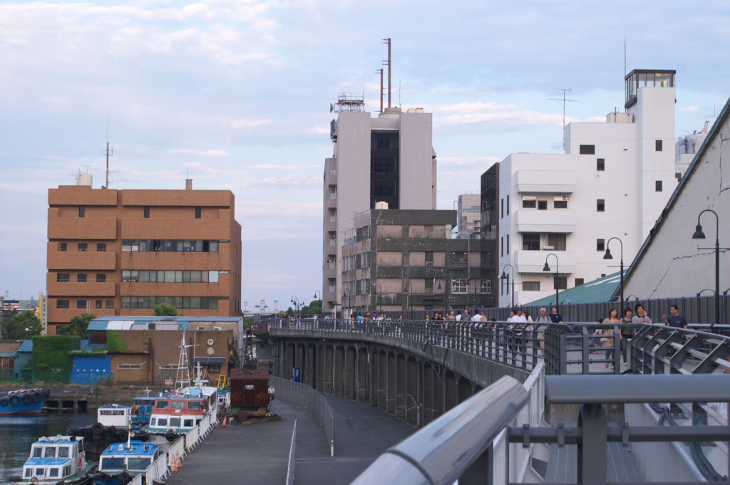 モダンな歩道橋の下の寂れた雰囲気がたまらない