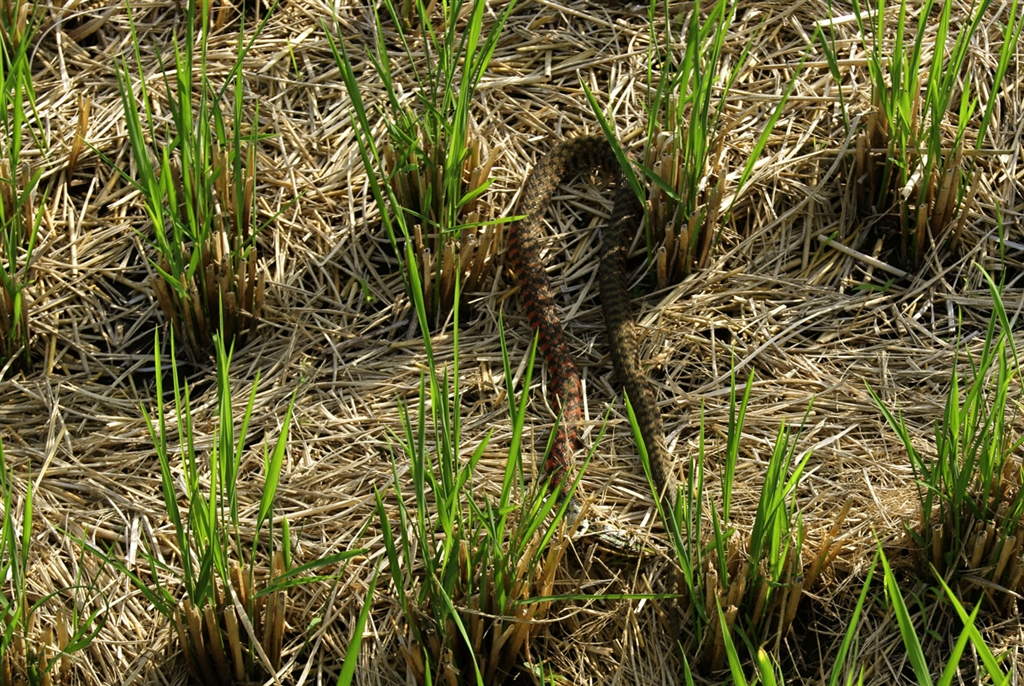 天敵が殿様カエルを咥えていました