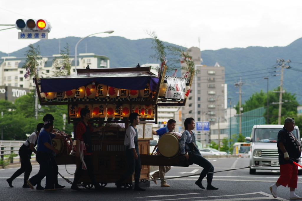 信号待ちにパチリ、練習に向かう山車