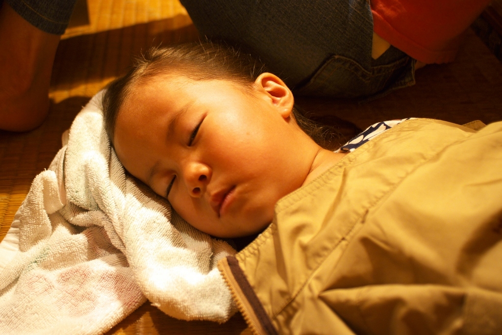 ママと同じく目を開けて寝る "童神"