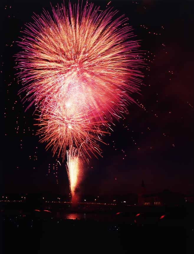 夕暮れ時の花火