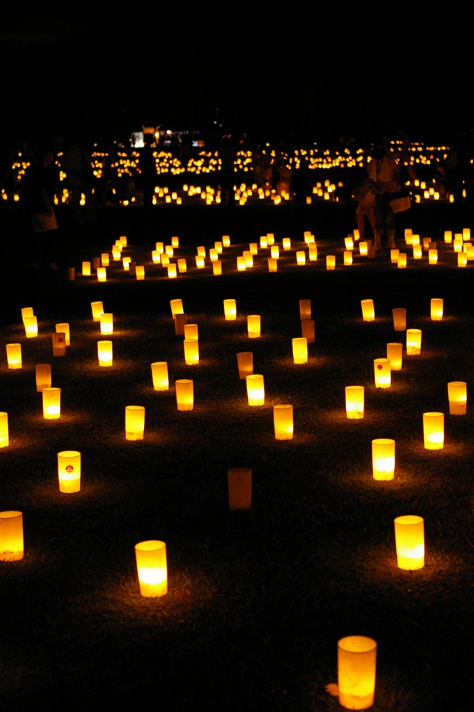 なだらかな丘に続く燈火