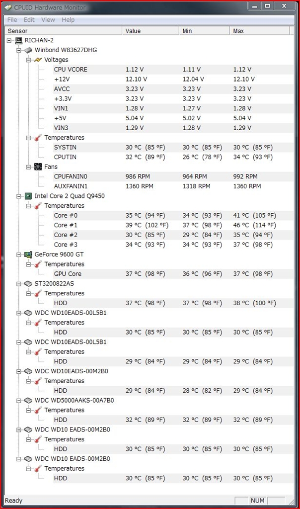 『CPUID Hardware Monitorのキャプチャー画像』 PC何でも掲示板 richanさんのクチコミ掲示板画像1/1