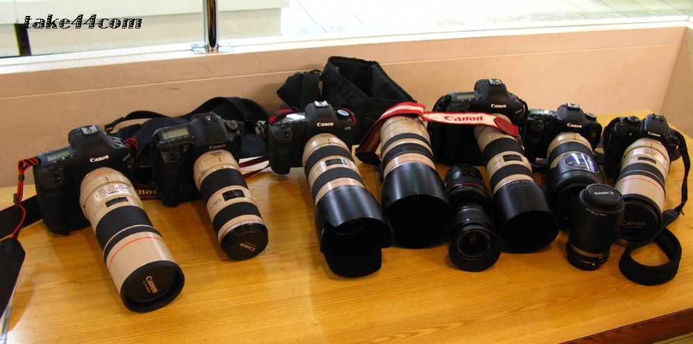 ずらり並んだEOSと白レンズ軍団
