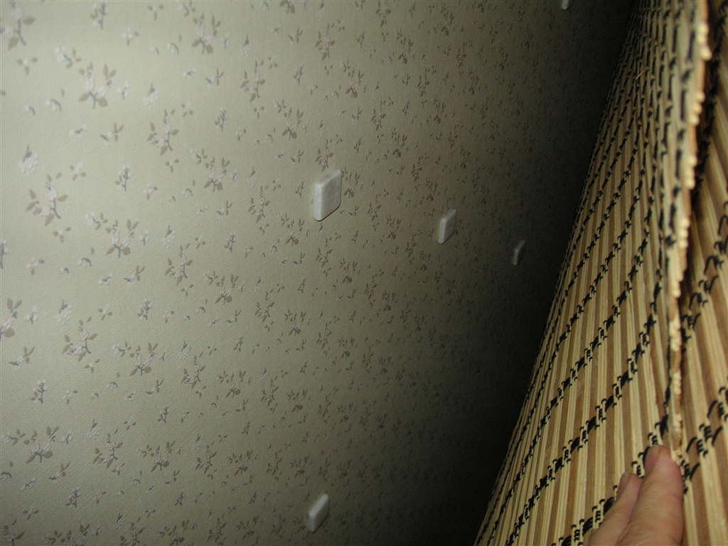 後ろの壁(簾の裏)に貼った大理石チップ