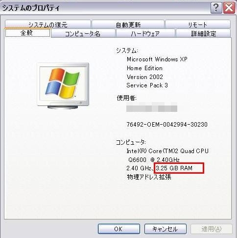『「システム」のプロパティー・全般』NEC VALUESTAR W VW770/KG タカラマツさんのクチコミ掲示板画像1/1