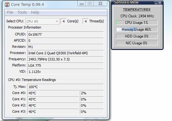 『Core Temp, SensorsView Pro 1.2の起動画面です。』SONY VAIO type R master VGC-RM55DL9 maxim081111さんのクチコミ掲示板画像1/4