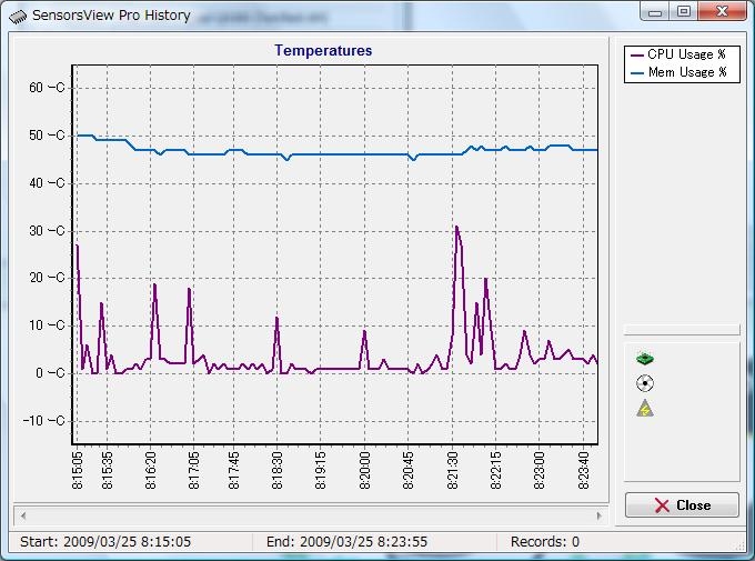 『SensorsView Pro 1.2の Temperatures画面です』SONY VAIO type R master VGC-RM55DL9 maxim081111さんのクチコミ掲示板画像2/4