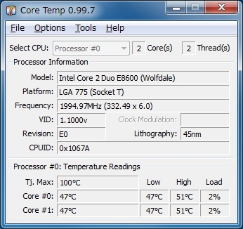 『Core Temp 交換前』Dell Inspiron 530 カーディナルさんのクチコミ掲示板画像1/2