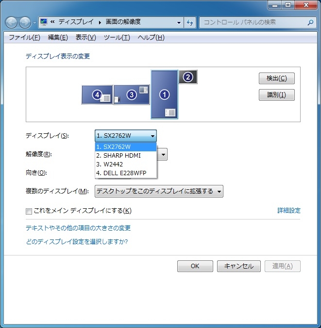 画面の解像度での各モニタ