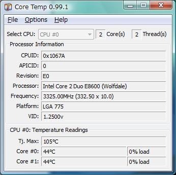 『Core Tempでの温度表示』Dell Inspiron 530 カーディナルさんのクチコミ掲示板画像1/1