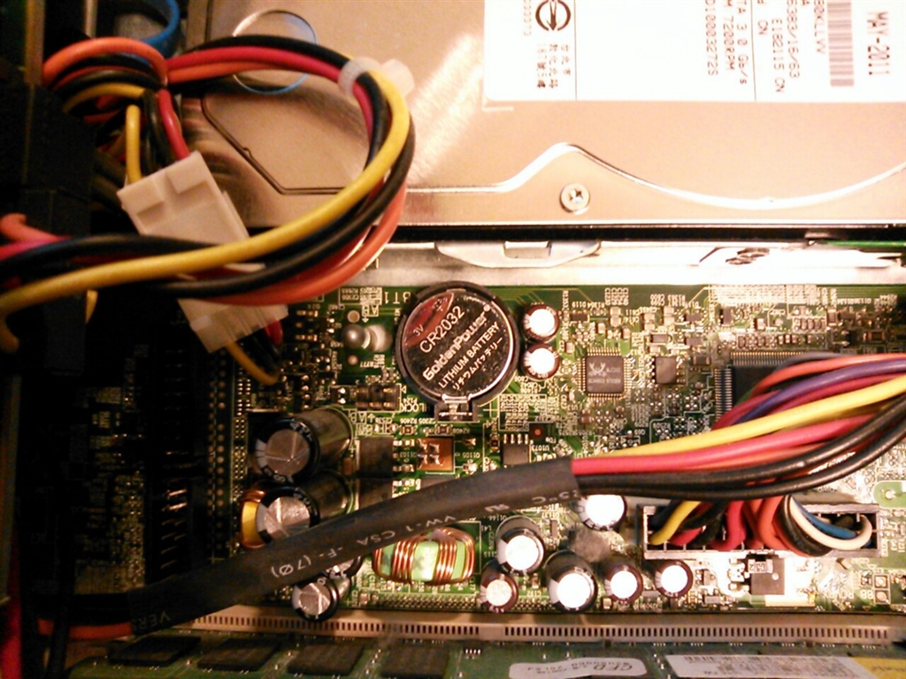 マザボ中央、リチウム電池付近