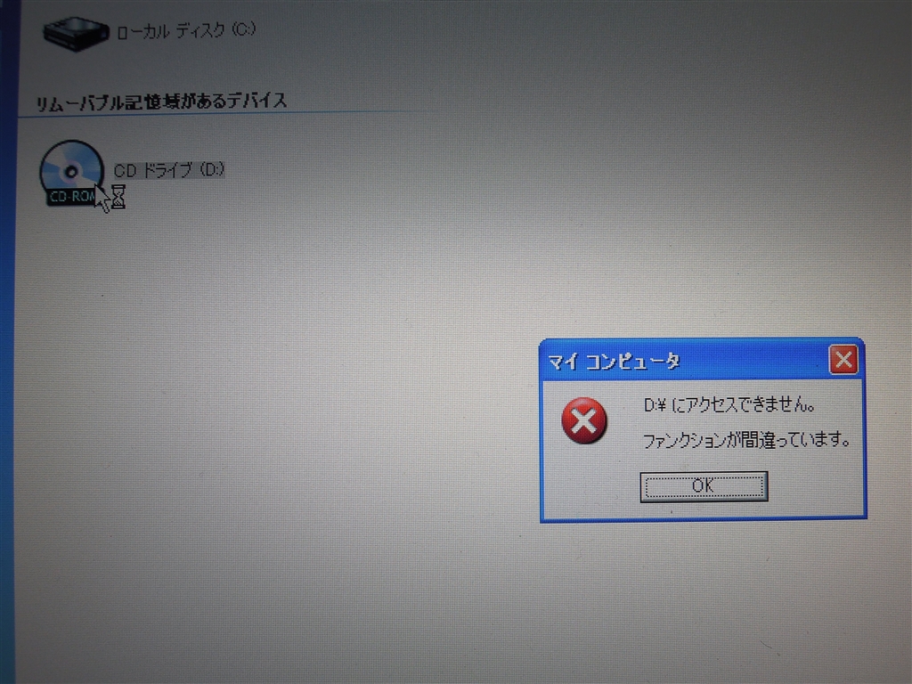 ドライブのアイコンをダブルクリックするとこのような表示が出ます