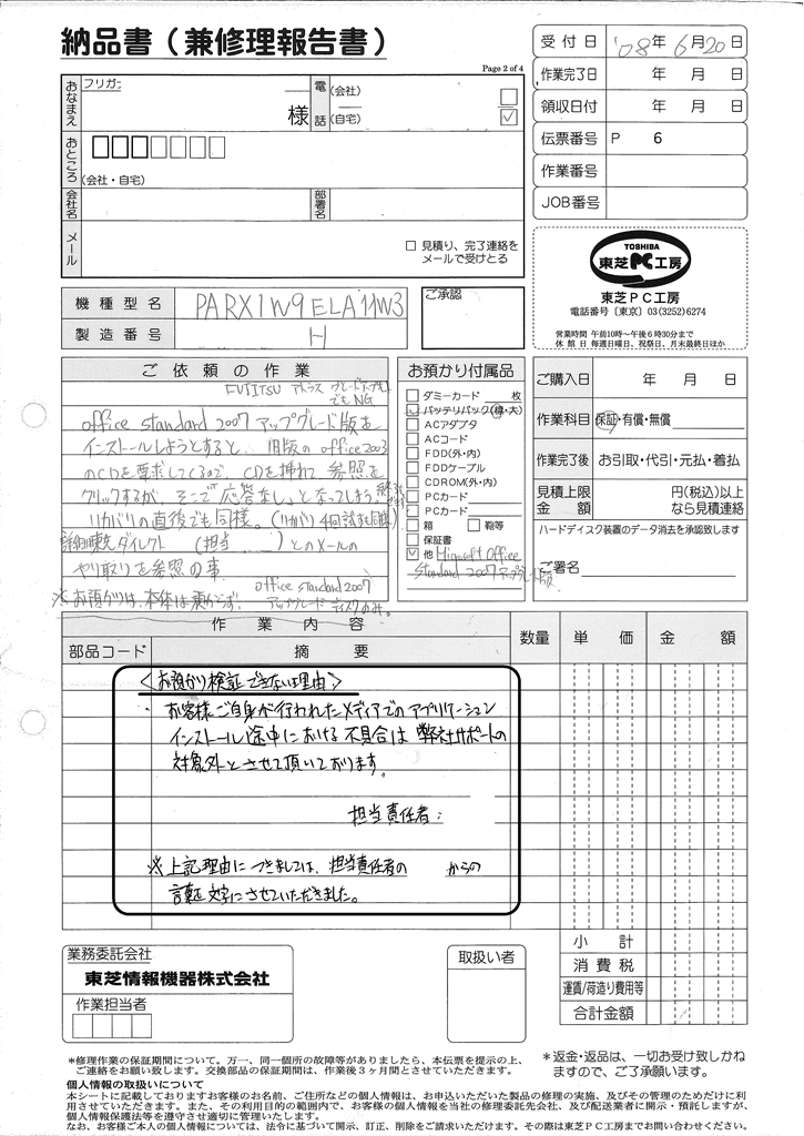 『検証調査を拒否されました。』東芝 dynabook SS RX1 SA106E/2W PPR1SACEKY3UAD ニコレックスさんのクチコミ掲示板画像1/1