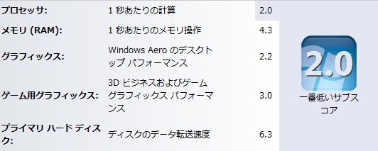 Windowsエクスペリエンスインデックス
