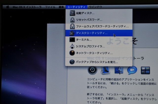 メニューバーからユーティリティの中のディスクユーティリティを開きます