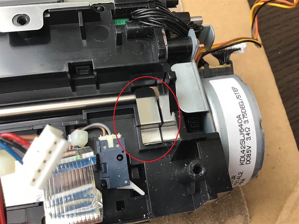 金属製の軸受け(ブロンズ色)をツメを外して起こす