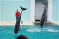 須磨水族園の場合は、トレーナーさんの対岸でジャンプするので