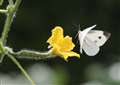 裏庭のキュウリの花に群がる蝶の飛び立つところを狙いました。