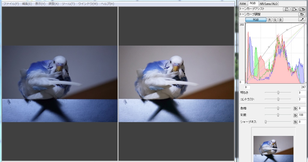 明るさとシャープを プラス + NR