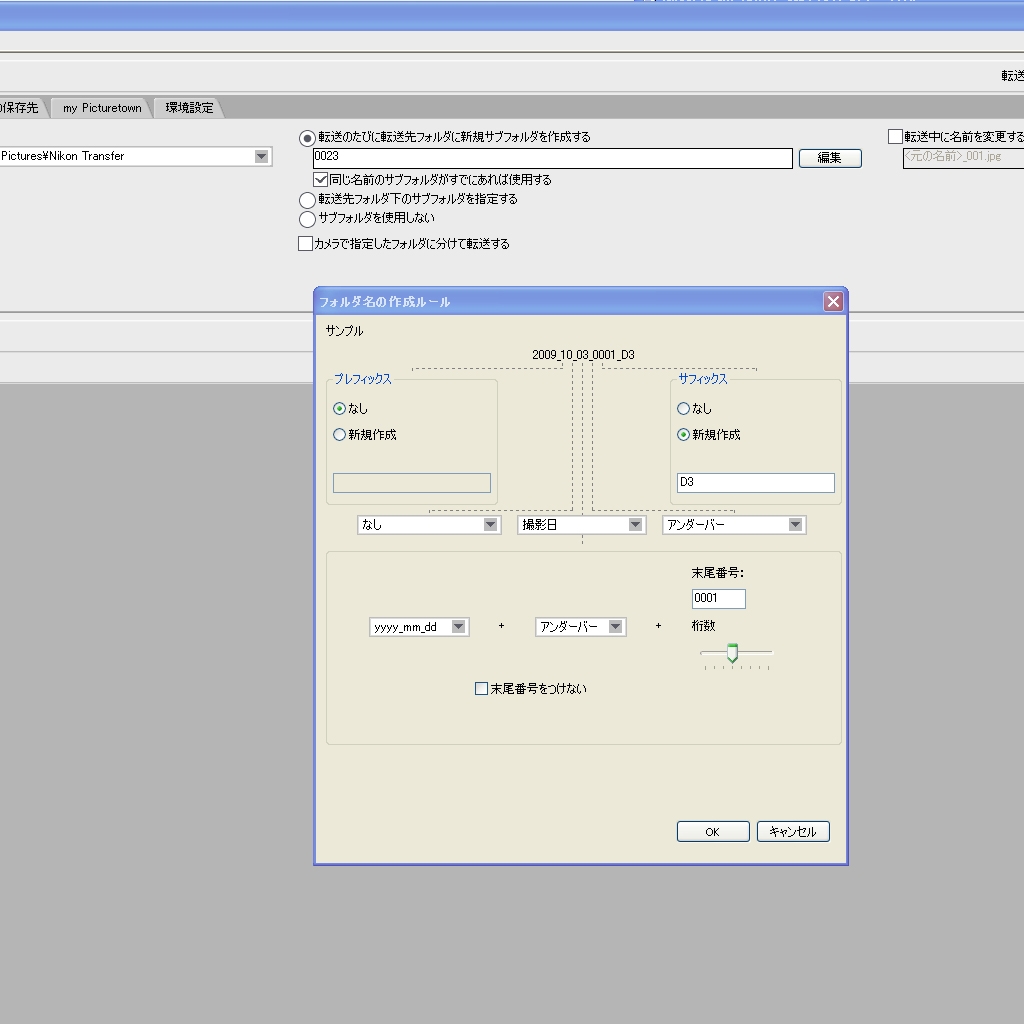 Nikon Transferの画像取り込みの設定画面