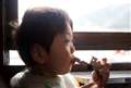 1枚のカットでは子供のほっぺの下半分から首にかけて、3枚目のカットでは画像の下半分全体、子供の服など特に色の濃いところが目立ちます。(3枚目は横縞を目立たせるために、露出、明度ともに無理に持ち上げています。酷いピンボケはご容赦ください。)