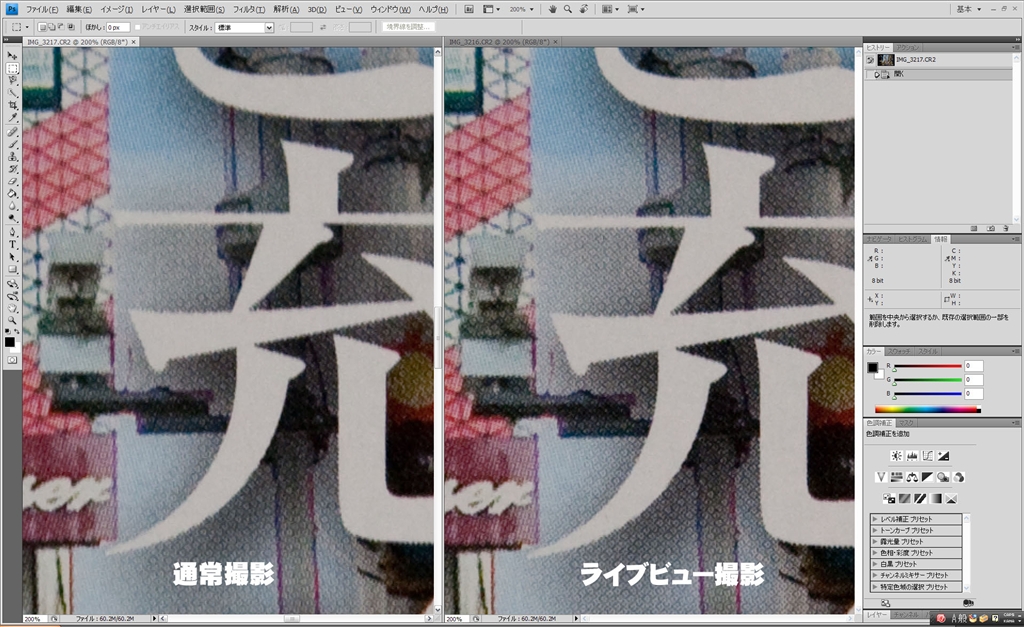 通常撮影 vs ライブビュー比較