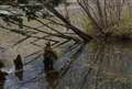 テムズ川。雨じゃなく、水門の閉め忘れです。駐車は自己責任で補償はないです。 |