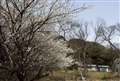 新緑も若芽も無くまだ寒々しい感じ中で紅白の色づいた花が浅い春のさわりのような感じですね^^