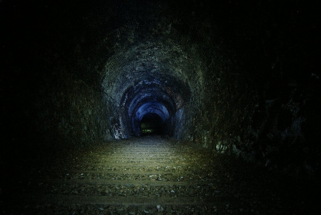 懐中電灯必須のトンネル内