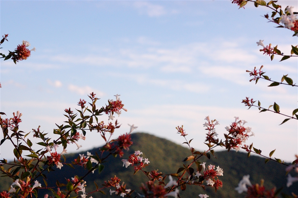陽が傾き始めたアベリアの咲く高台にて